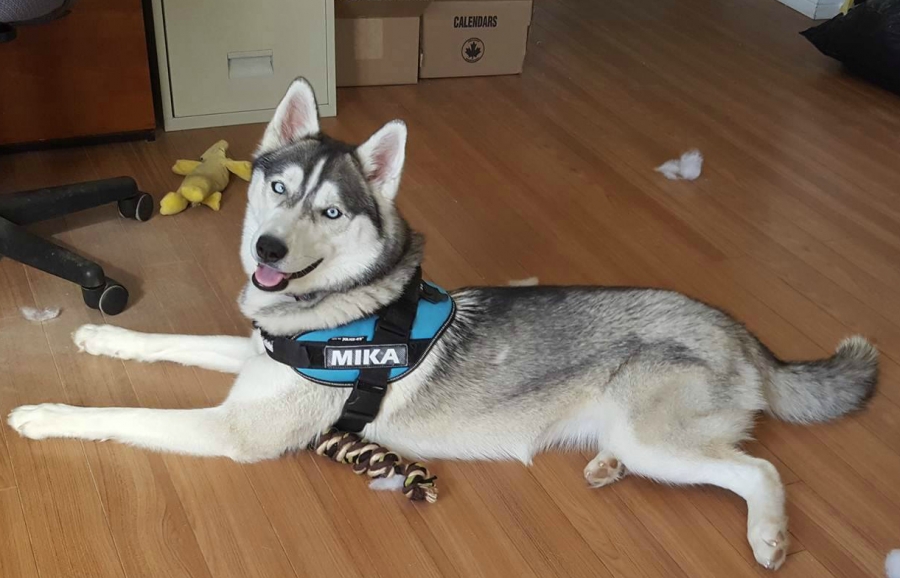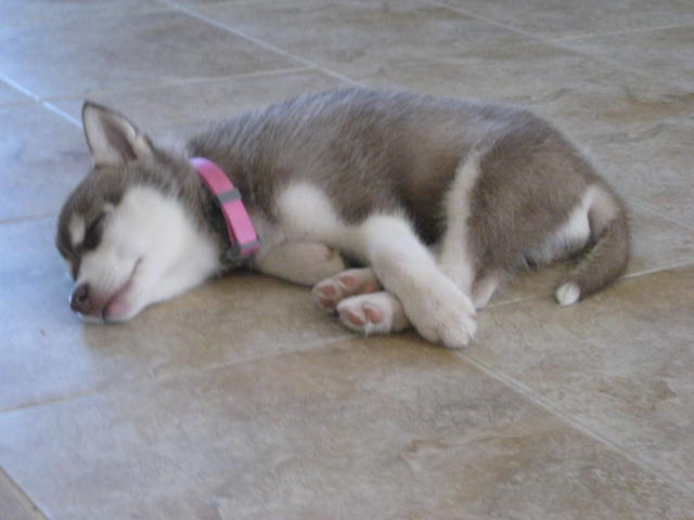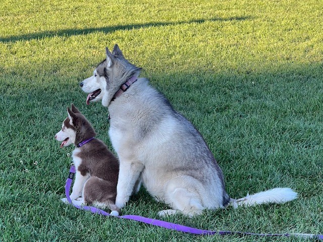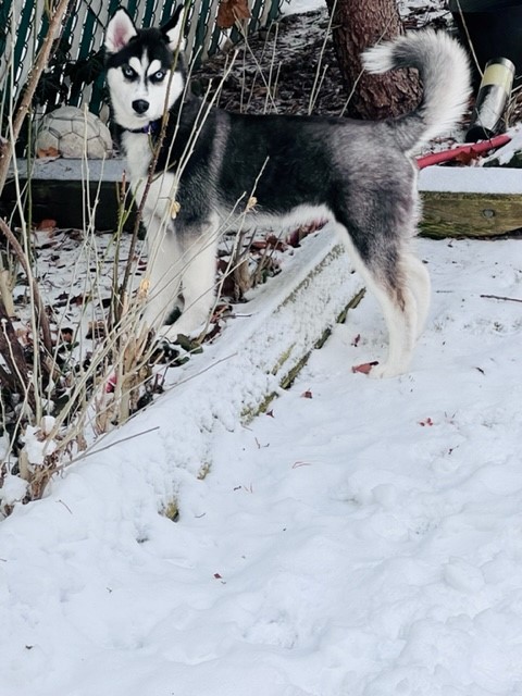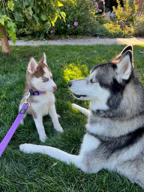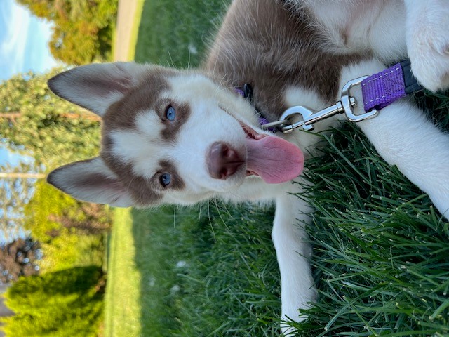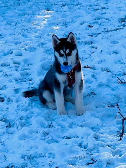 Just wanted to give you an update on Mishka. She is such a wonderful addition to our family and we couldn't be more in love with her. She loves her play dates, her hikes and loves playing in the water. She's so good in the car, all she does is sleep until we get to our destination. We can't wait to take her camping this summer and see how much she loves it. Her training has come a long way and she's become such a well mannered husky even only at 4 months. She's met a couple kids and is so patient and gentle with them. We couldn't be happier with our little Mishka. Thank you so much.
