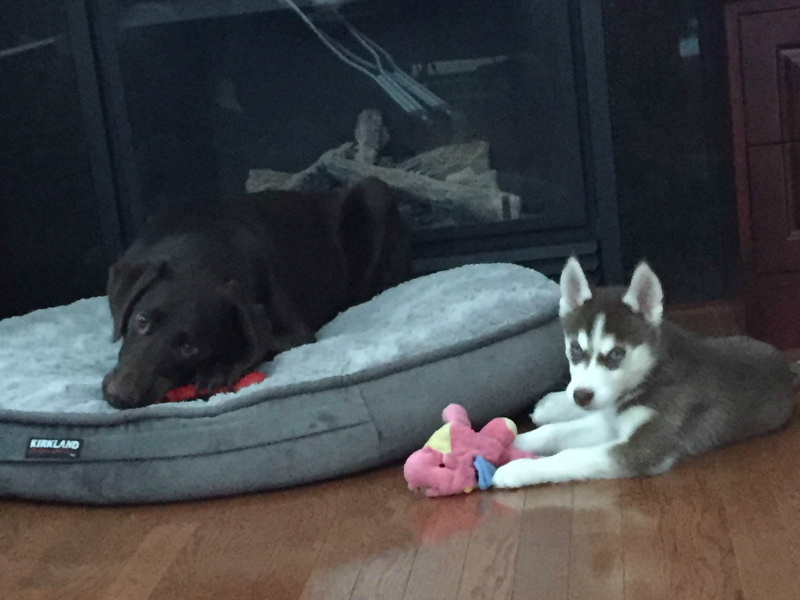 Riggs is awesome and has been a super easy addition to the family.  He is growing like crazy, very happy being outside chewing sticks and is generally a very chill guy.  We love him to bits.  He and Flash are best friends and life is great.