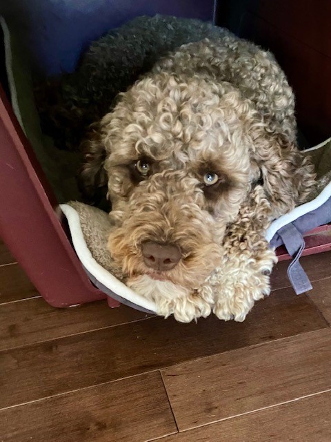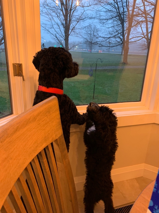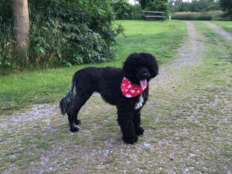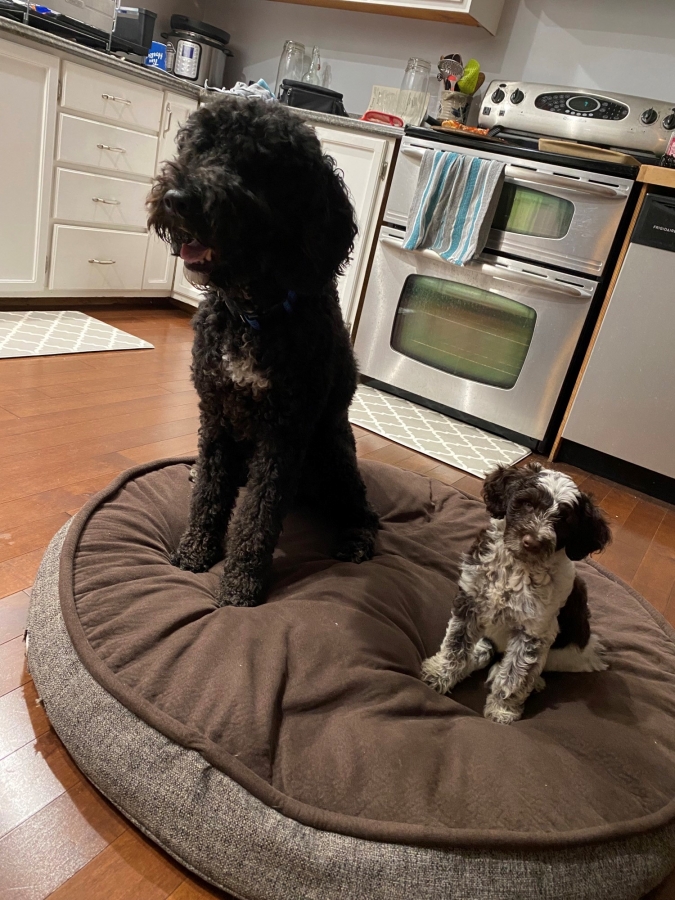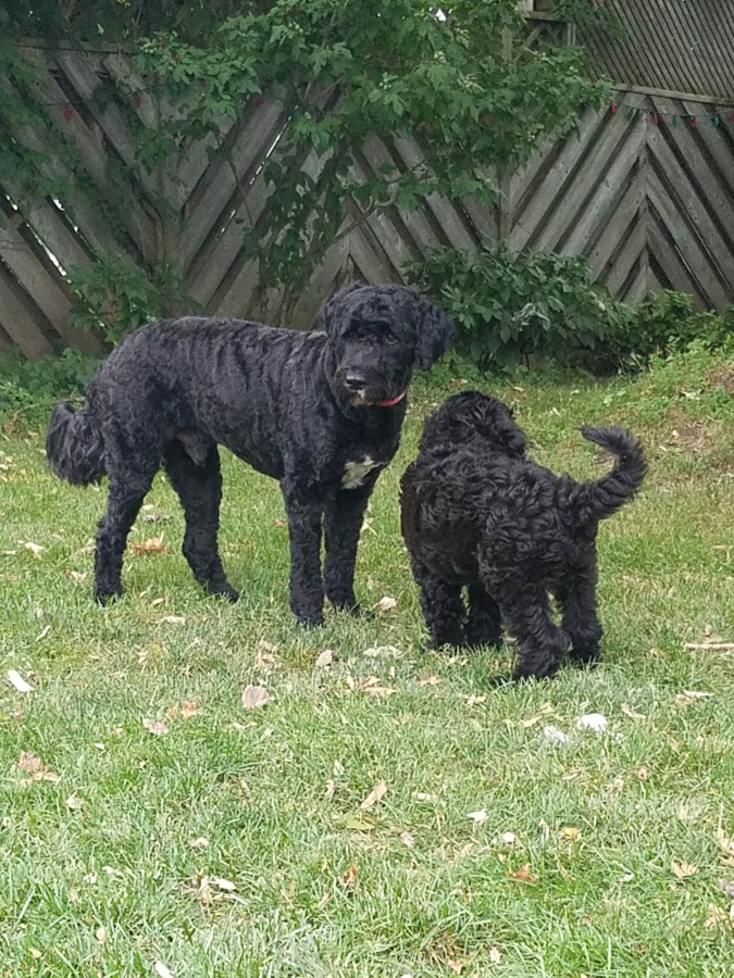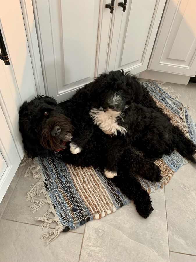 I hope you are doing well. Paul and I have a Portuguese Water Dog from Kybra that we picked up just over a year ago, Bear Sharpe. And we absolutely love him. He is such a great dog and so smart! I attached some photos for you to see.