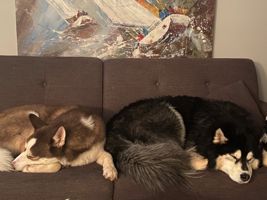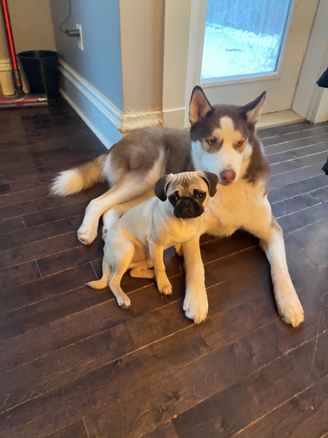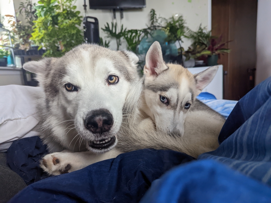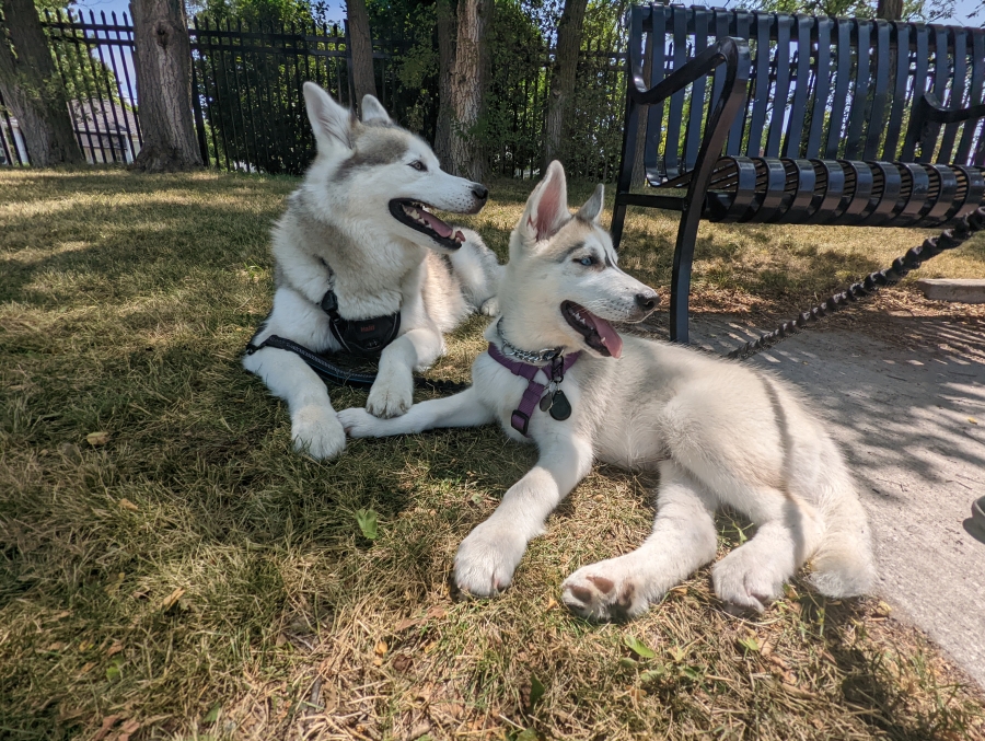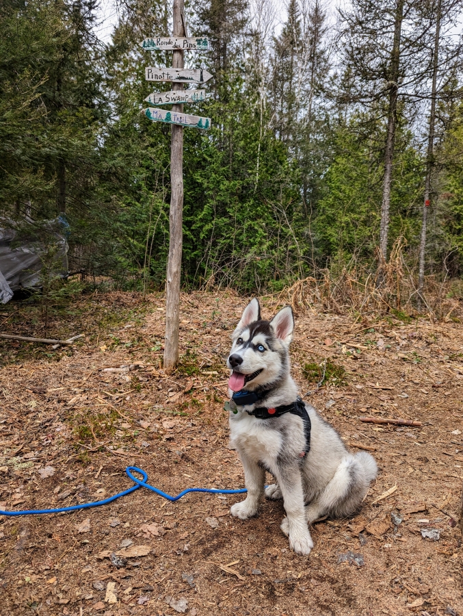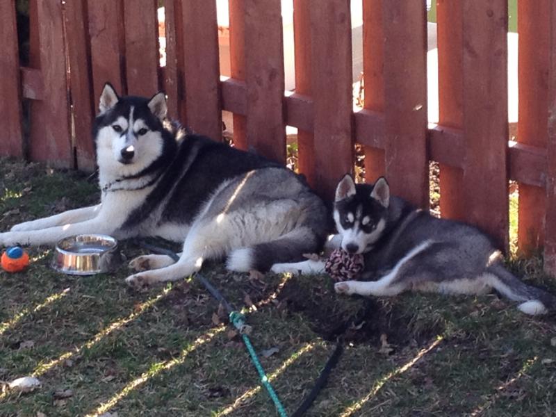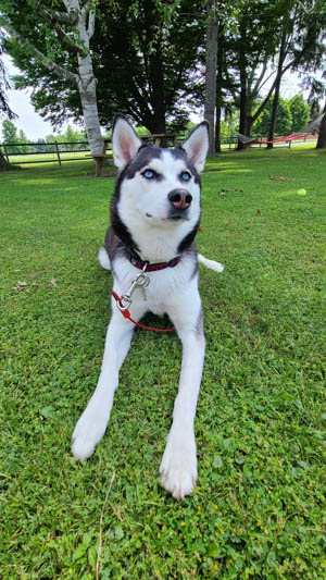 I thought you'd like an update on Ambroise. He's doing well! I think he's beginning  to love his life here. He's so different from our other Husky, Atticus. He's more chill than Atty and he loves to eat (everything!). We really have to be conscious about keeping socks and kitchen cloths out of reach. (We call him our little Langolier (from a Stephen King movie) as well as our little tank. Lol) He and Atticus get along so well. They chase each other around the yard like crazy - great for tiring them both out!