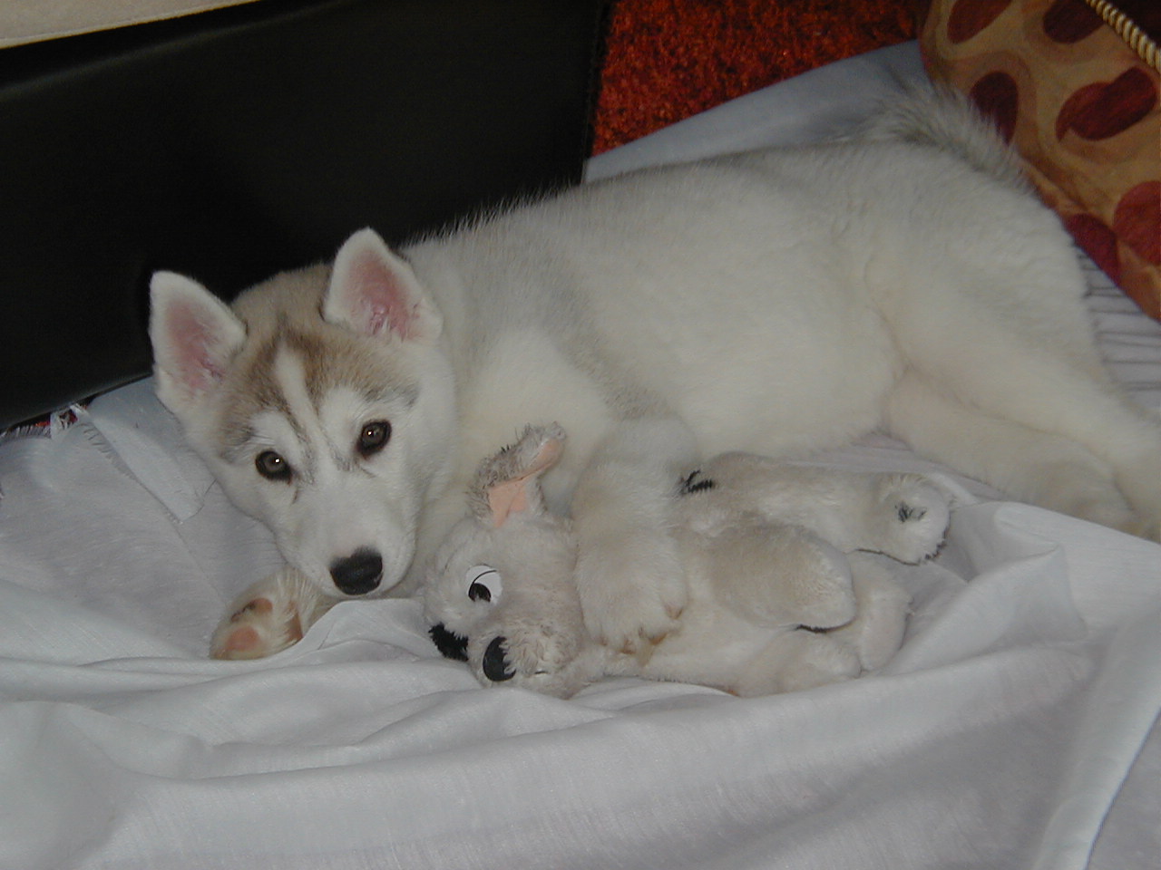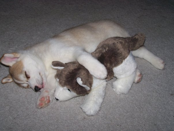 Here's Nelly!! Very Cute!! The second picture was not posed by me, she just did that on her own...(the one with her stuffed husky)....