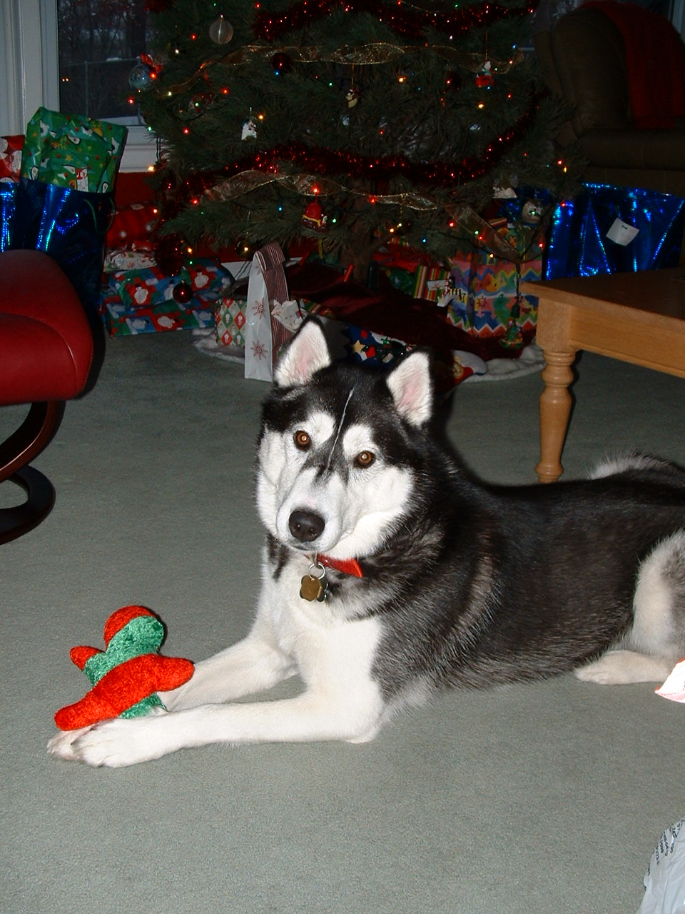 How are things going with you? I hope all is well. I just thought that I would send you an updated picture of one of your puppies that turns 2 yrs today. This is a picture of our Nikki on Christmas morning 2007. She is such a good dog and very commical at times. We love her very much. I just can't believe that she is 2 already. Have you had any other litters of puppies? If we had a larger house I would almost be tempted to get another one.